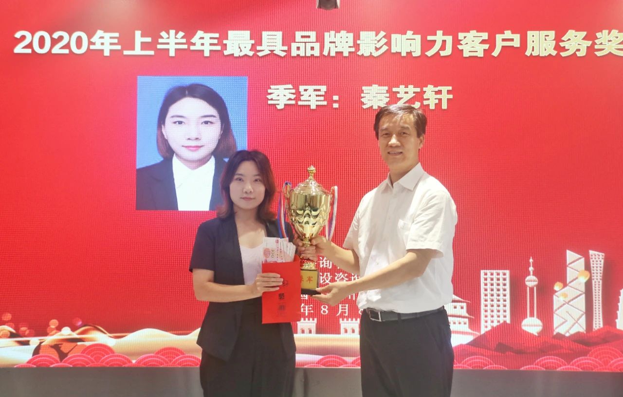 董事長(zhǎng)楊明宇為在2020年上半年客戶服務(wù)工作中表現(xiàn)突出的先進(jìn)個(gè)人頒發(fā)獎(jiǎng)杯和獎(jiǎng)金。
