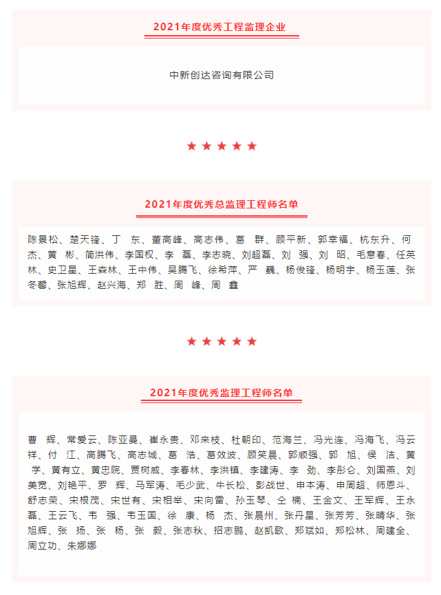 近日,河南省建設監(jiān)理協(xié)會發(fā)布《關于表彰2021年度在推動行業(yè)發(fā)展等方面做出優(yōu)異成績的工程監(jiān)理企業(yè)和個人的決定》,評選出在行業(yè)內對2021年度在黨團基層組織建設、公益慈善事業(yè)、誠信履職盡責、參與行業(yè)公共事務、推動行業(yè)發(fā)展等方面做出優(yōu)異成績的工程監(jiān)理企業(yè)和從業(yè)人員進行通報表彰。創(chuàng)達咨詢榮獲“2021年度優(yōu)秀工程監(jiān)理企業(yè)”稱號,獲獎人數(shù)再創(chuàng)新高!